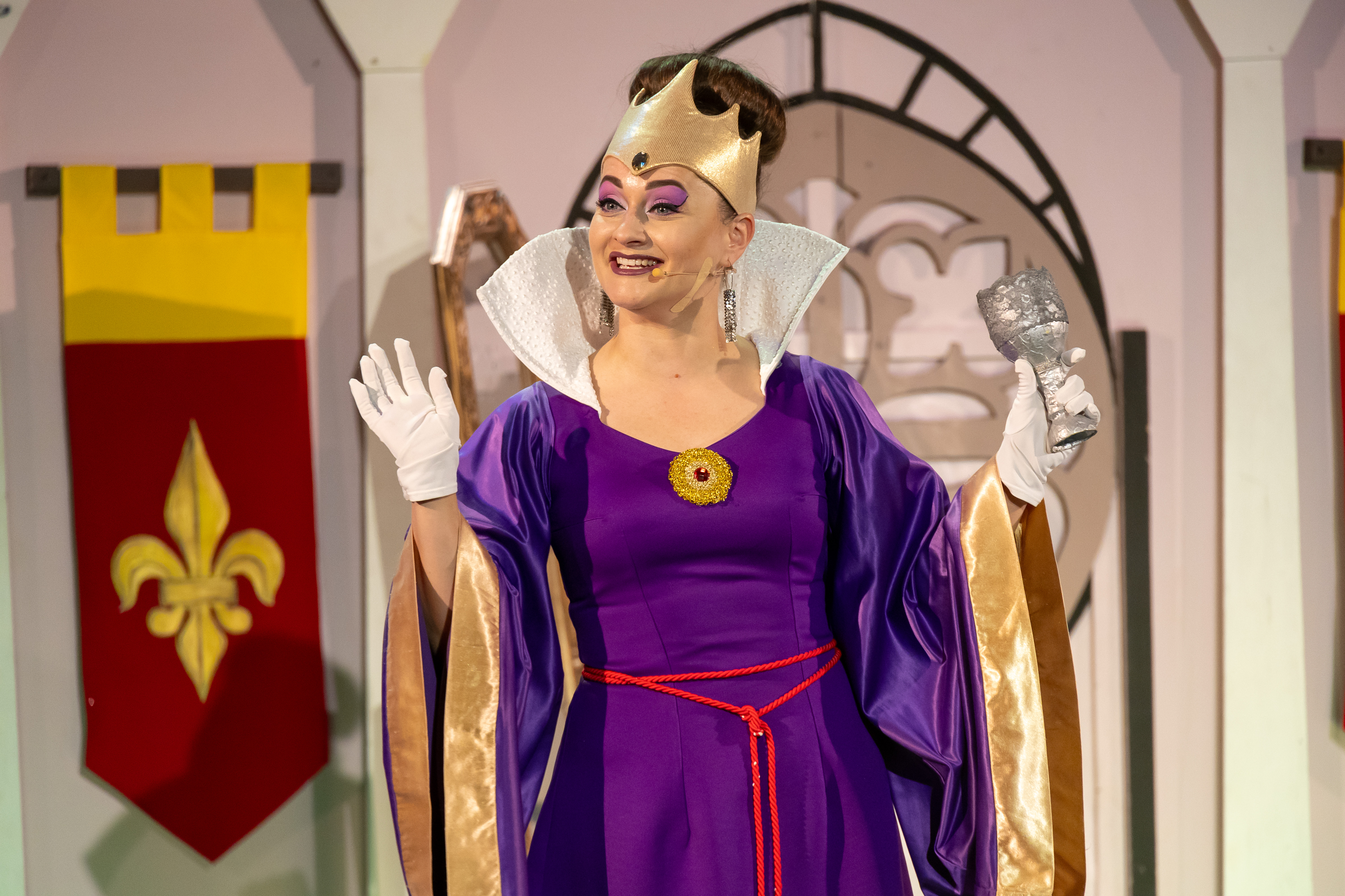 Frumoasa, Alba ca Zăpada locuind cu mama sa vitregă nu-și pierde sinceritatea și bunătatea sufletească, dansează și cântă împreună cu copiii și cu noul ei prieten, Mutulică. Ei trăiesc în armonie în căsuța piticilor din pădure, însă Regina, mama vitregă a fetei, fiind invidioasă pe frumusețea Albei ca Zăpada vrăgește mărul. Mutulică fiind un pitic ager și devotat pune la cale un plan pentru a salva Alba ca Zăpada. Care este planul de salvare a frumoasei fete rămâne să vedeți la Spectacol.