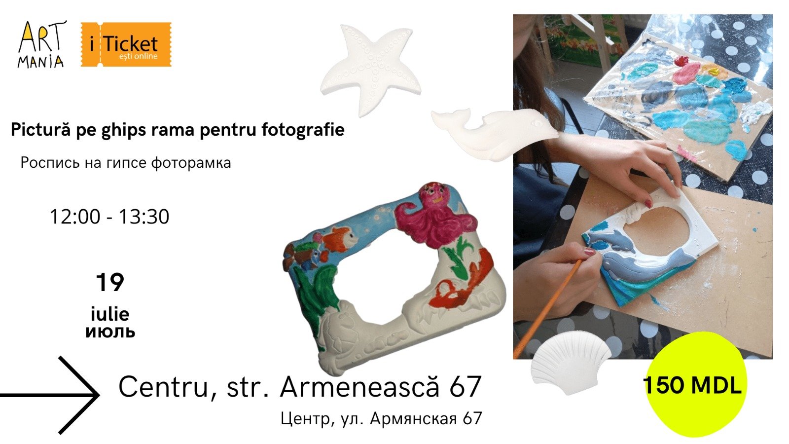 Ne jucăm cu culorile și transformăm simple rame din ghips în adevărate opere de artă! Fiecare participant va picta și decora o ramă unicat – perfectă pentru o fotografie dragă sau ca mic cadou cu suflet.
