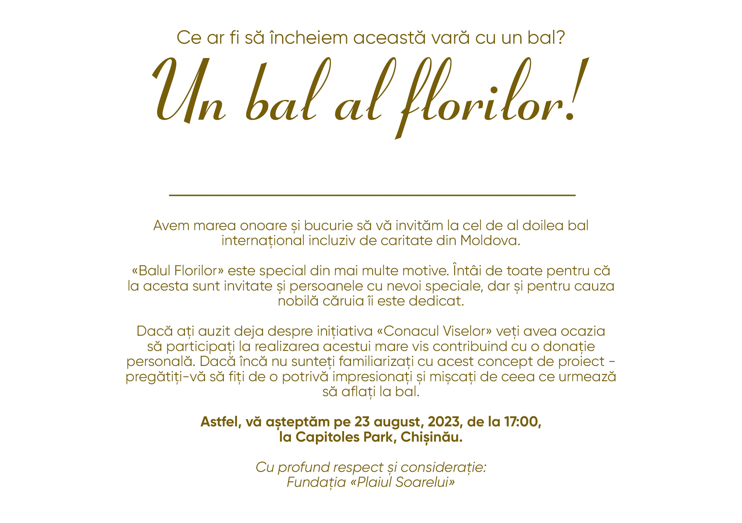 Avem marea onoare și bucurie să vă invităm la cel de al doilea bal internațional incluziv de caritate din Moldova.