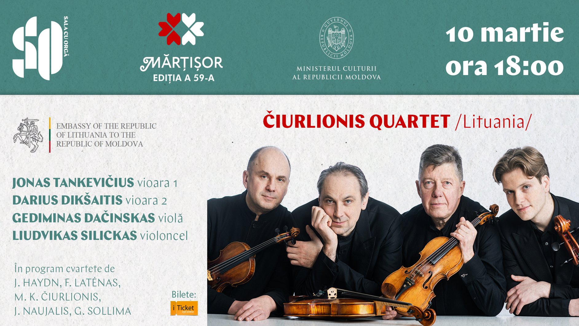 susținut de renumitul ČIURLIONIS QUARTET /Lituania/