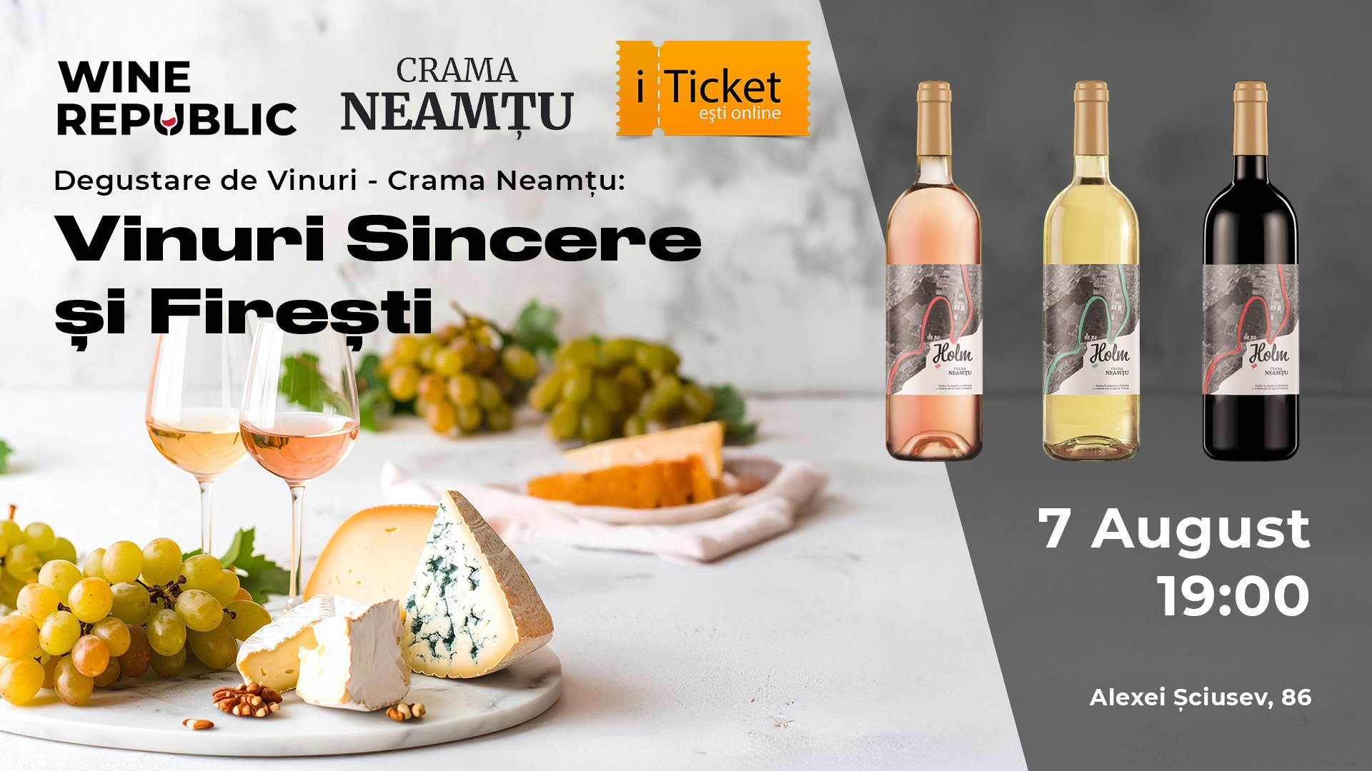 Vă invităm la o seară dedicată purității vinului și pasiunii pentru tradiția viticolă autohtonă. Crama Neamțu – o cramă de familie mică, dar profund dedicată – ne aduce vinuri create cu grijă, fără compromisuri, doar prin metode naturale.