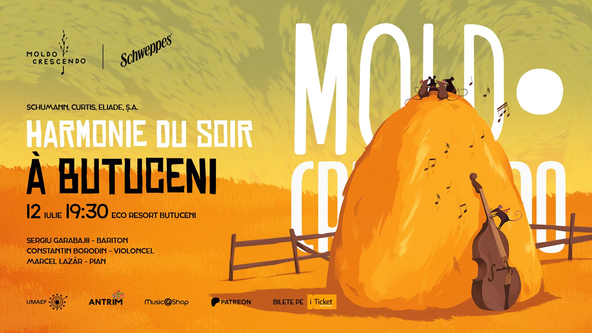 Ultimul concert din seria de concerte de vară by Schweppes ne adună la Butuceni, un sat care deja a devenit sinonim cu muzica clasică, opera, teatrul, tradițiile și natura. Inspirați de poezia lui Baudelaire - Armonie de seară, ne strângem în fața casei mari, acolo unde am cântat și anul trecut și ne bucurăm de armonii suave de Schumann, Eliade, Curtis, Tchaikovsky, Faure și alții.
