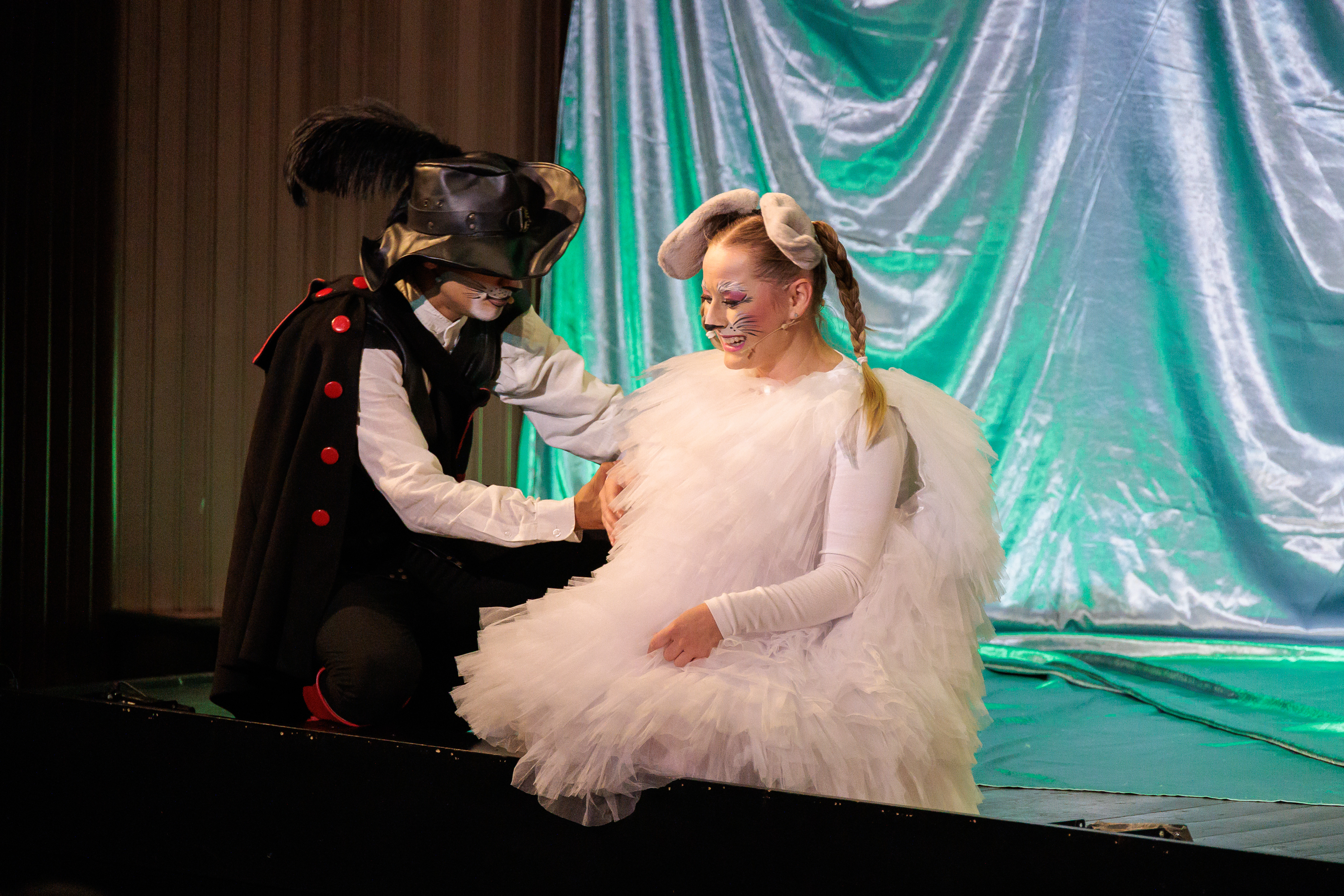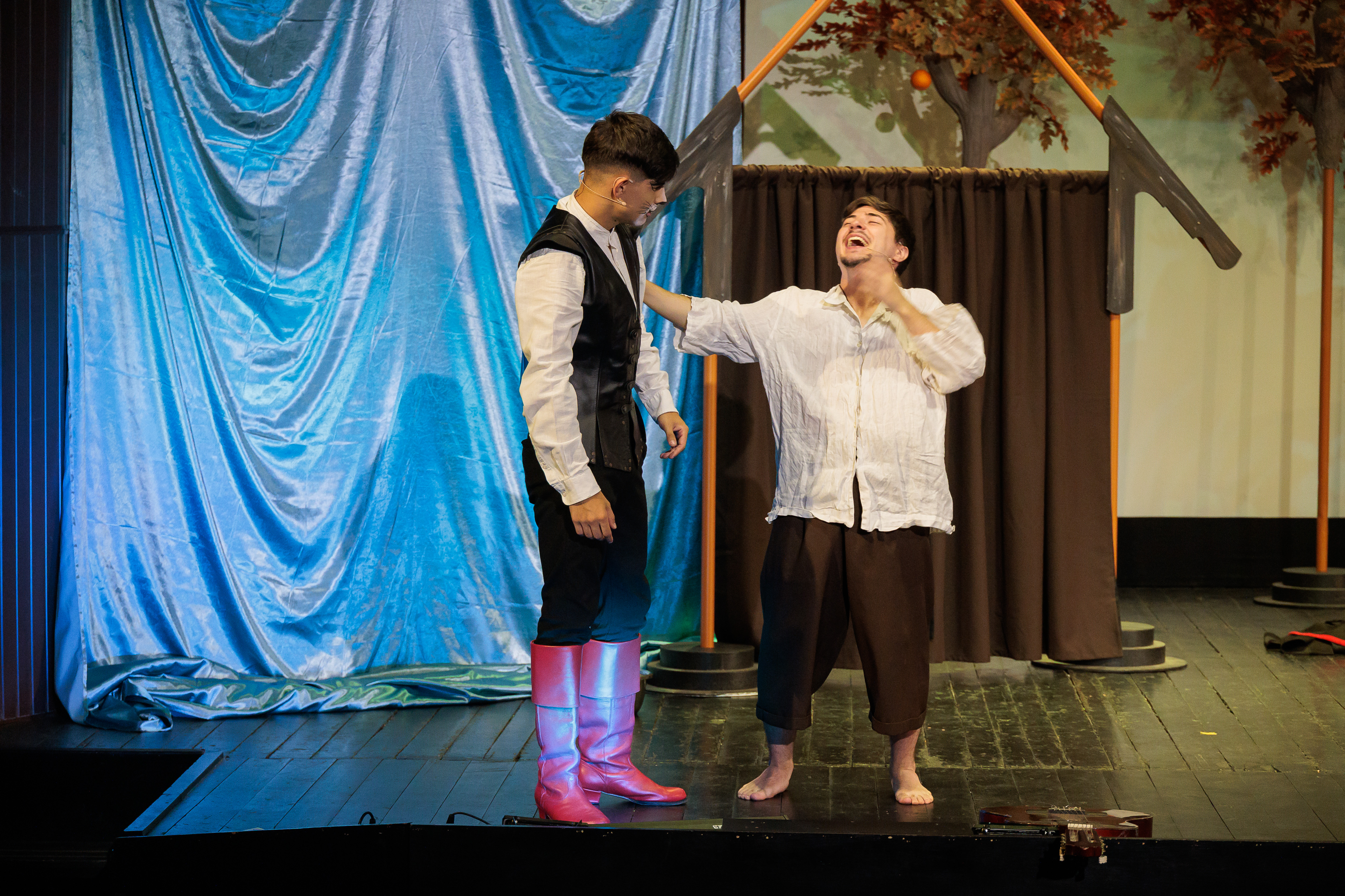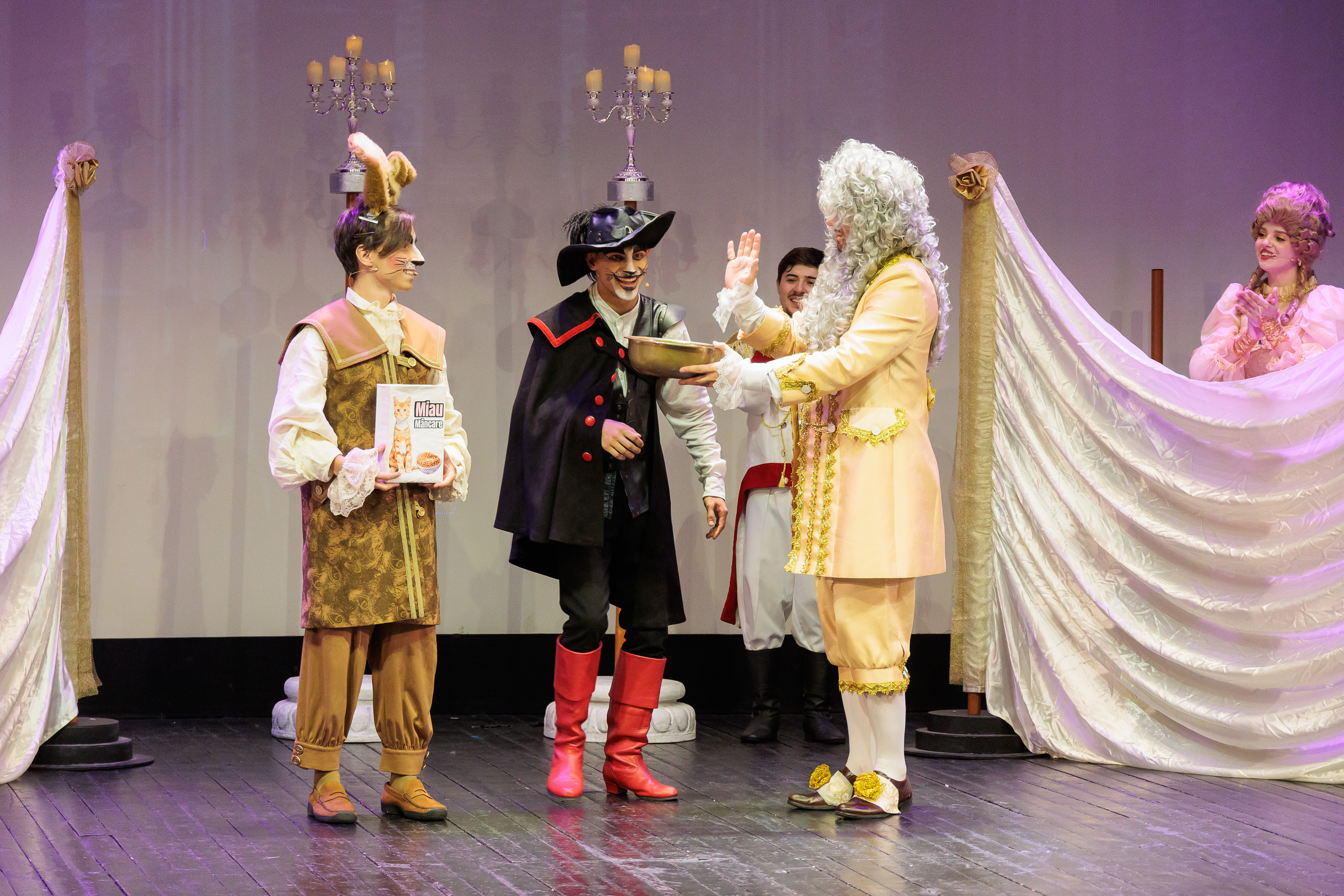 Motanul Încălțat se desfășoară în limba română și este un spectacol de animație pentru copii prezentat de echipa Planeta Clounella într-un format netradițional pentru scena clasică.