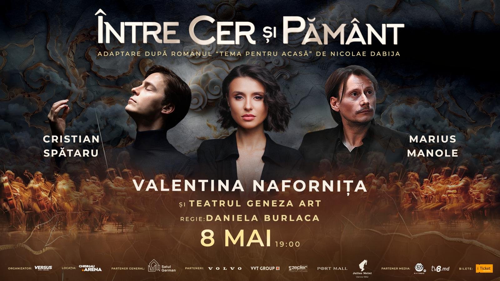 «Între Cer Și Pământ» este o complexă experiență artistică de două ore, care va implica muzică, coregrafie, instalații și lumini și va întruni un șir de somități din lumea artelor spectacolului ca actorul Marius Manole din România, care a fost invitat pentru crearea rolului central al romanului „Temă pentru acasă” în tandem scenic cu soprana Valentina Nafornița, alături de echipa Teatrului Geneza Art și Orchestra Camerata Chișinău.
